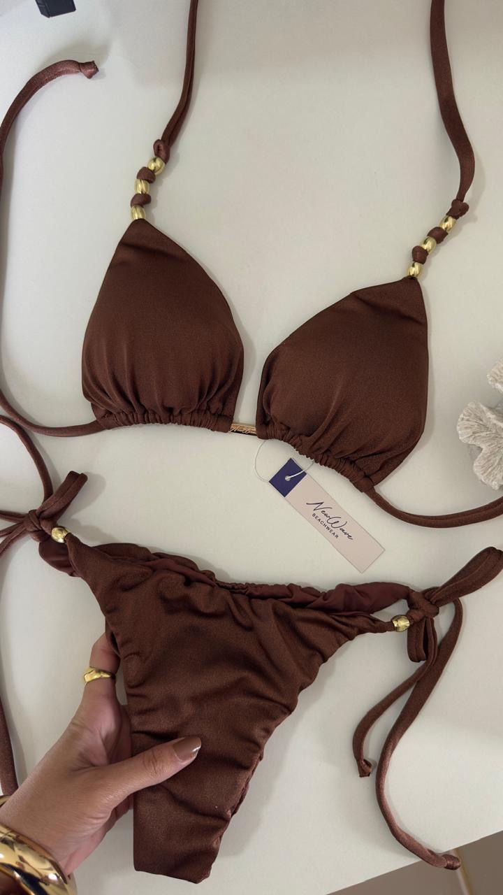 Nosso biquíni cortininha mocha mousse é um modelo cheio de personalidade, que une design moderno e detalhes em nozinhos com metais para você arrasar do dia na praia até a festa. Com toque confortável e acabamento sofisticado, é perfeito para quem não abre mão de estilo.