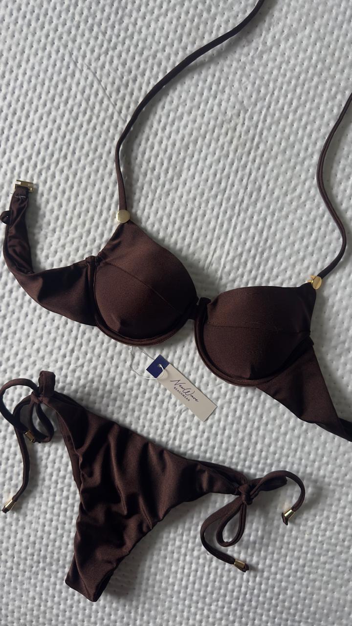 Combine o nosso biquínis taça aro marrom com a nossa camisa de linho marrom pra um look sofisticado na beira do mar.