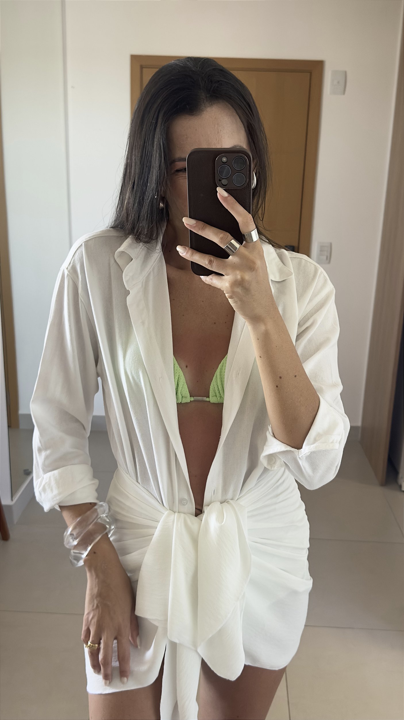 Monte o seu look beach wear biquíni nw com camisa linho e pareô curta. Uma proposta fashion, elegante e moderno.