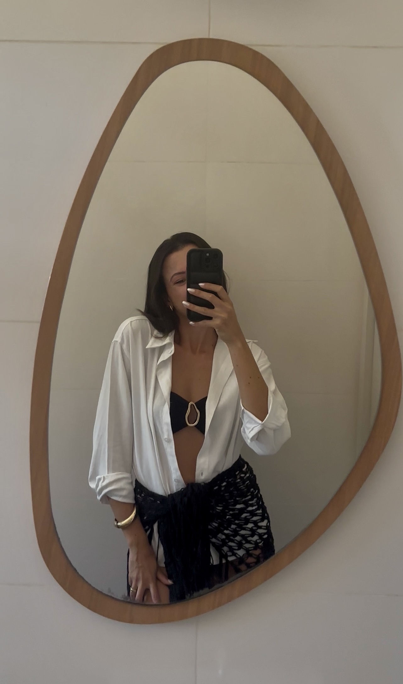 Para um sim fashion complemente com a nossa camisa de linho por dentro da saia franjas, look beach wear cool e moderno.